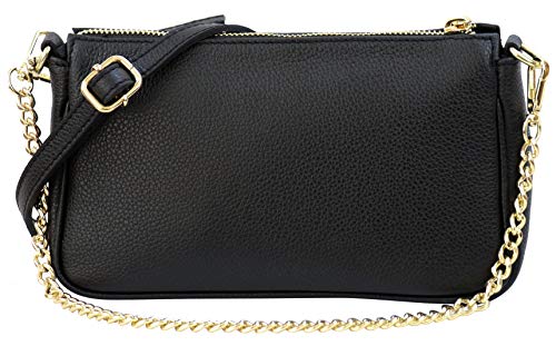 SH Leder Larisa G324 - Borsa a tracolla in vera pelle, 23 x 13 cm, colore: Oro, Nero (Nero ), Small