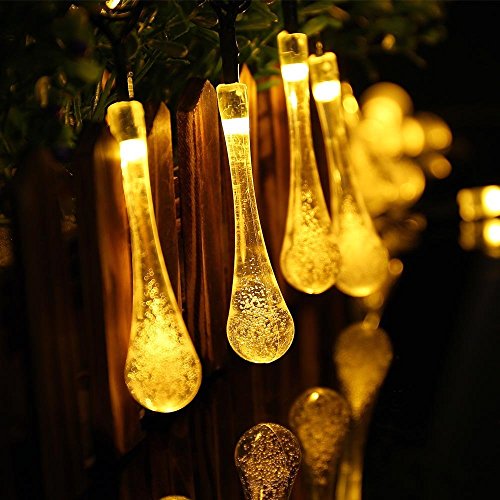 LederTEK Solar Powered goccia dell'acqua luci leggiadramente della stringa 4.8m 20 LED 8 modi impermeabile Natale lampada decorativa per scoperta, giardino, casa, Matrimonio, Albero di Natale Anno nuovo partito (20 LED Bianco Caldo)