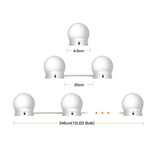 LEDGLE Luci da Specchio, Stile Hollywood Kit Luci per Specchio, 10 Lampadine Dimmerabili a Specchio per Lampada da Toletta, Lampada Trucco, Specchio Cosmetico, Lampada Specchio Bagno