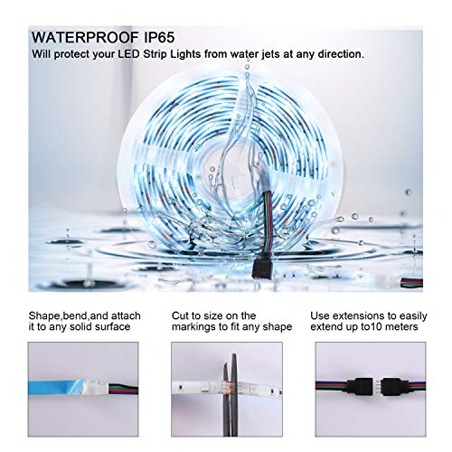 LEDGLE Led striscia Rgb 5050 5M, Strisce Led 12v, WiFi Intelligente Music Sync LED Strip APP Controllo Compatibile con Android,IOS, Alexa, Google Home, Impermeabile IP65, 150 LED, 24W(interni/esterni