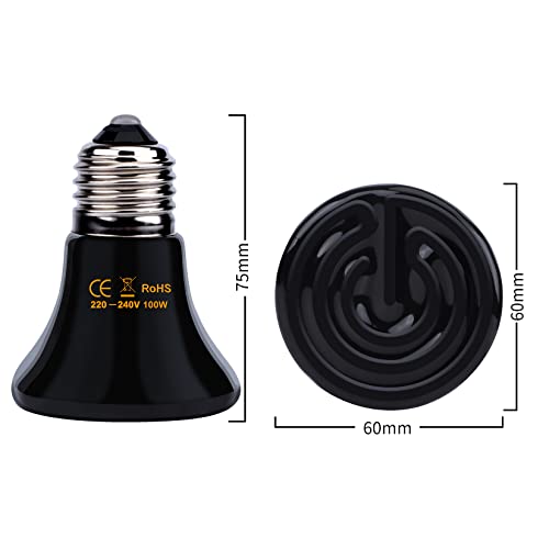 LEDGLE E27 trasmettitore riscaldatore Animali Lampadina riscaldatore a Raggi infrarossi in Ceramica, Lampada Rettile per Anfibi, Serpente, Uccelli, Tartaruga, Gatto, Cane (100W Mini)