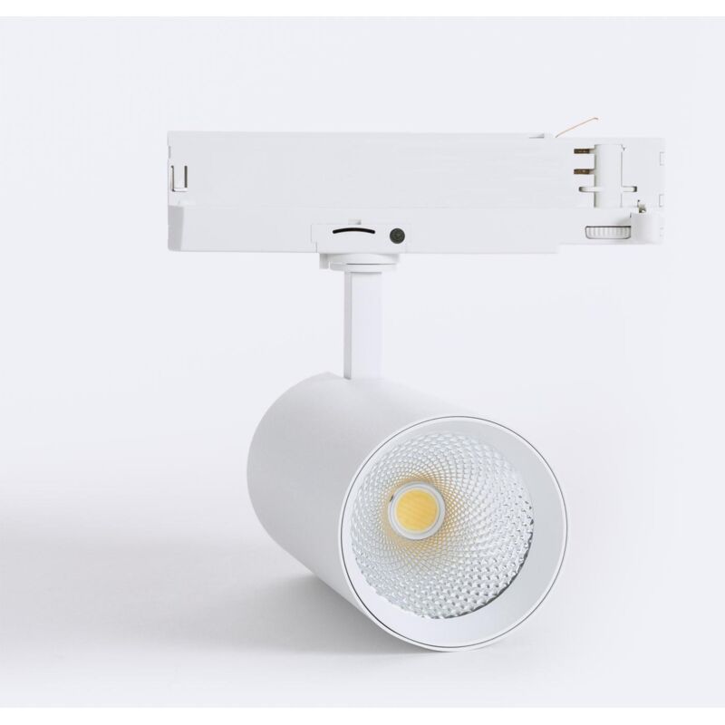 Il Faretto LED per Binario Trifase 40W Carlo No Flicker Bianco è perfetto come luce d'accento in qualsiasi sistema di illuminazione a binario. Combina un design che si adatta a qualsiasi stile con prestazioni eccellenti. Caratteristiche del Faretto LED per Binario Trifase 40W Carlo No Flicker Bianco Integra una sorgente luminosa che si distingue per le sue elevate prestazioni, distribuita in un fascio di luce altamente concentrato con un'apertura di 36° . Come la maggior parte degli apparecchi a binario, può essere spostato e orientato in qualsiasi direzione, a seconda delle esigenze del momento. Questo tipo di luce focalizzata si integra perfettamente con l'illuminazione generale di qualsiasi spazio. Inoltre, è dotato di uno snodo che consente di orientare il faretto. È molto facile da installare sul binario e consente di spostare l'apparecchio lungo il binario. In questo modo si ottiene un sistema di illuminazione molto flessibile che si adatta a qualsiasi situazione. L'elevato