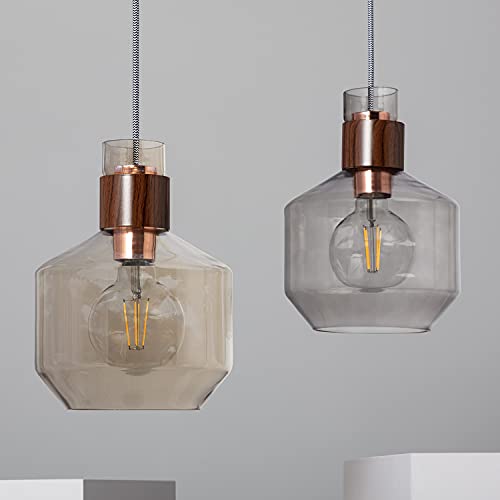 LEDKIA LIGHTING Lampada a Sospensione Vetro Iatova 1795x195x195 mm Ambra E27 Legno,Vetro per Sale, Soggiorno, Cucina, Camera