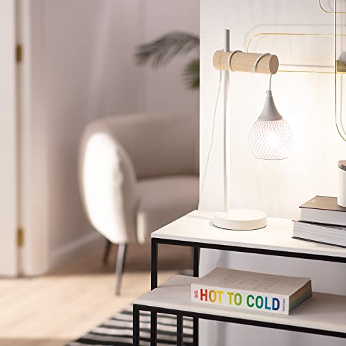 LEDKIA LIGHTING Lampada da Tavolo Monah ILUZZIA 500x140x210 mm Bianco E27 Metallo,Legno per Sale, Soggiorno, Cucina, Camera