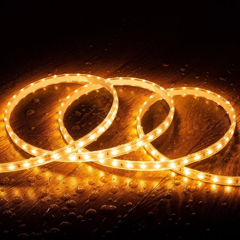 La Striscia LED 220V SMD2835 60LED/m Bianco Super Caldo IP65 Larghezza 12mm Taglio 100cm non necessita di alcun tipo di fonte di alimentazione in quanto si collega direttamente alla rete elettrica. La sua flessibilità gli consente di adattarsi a quasi tutte le superfici. Caratteristiche della Striscia LED 220V SMD2835 60LED/m Bianco Super Caldo IP65 Larghezza 12mm Taglio 100cm Questa striscia integra LED con tecnologia SMD2835 ad alta efficienza . La luce brillante che emette è distribuita con un angolo di 120°. Inoltre, essendo realizzato con materiali di prima qualità, presenta la massima protezione contro gli agenti solidi esterni e una magnifica protezione contro i liquidi che si riassumono in un fattore di protezione IP65 e che lo rende adatto all'utilizzo sia in ambienti interni che esterni. La sua grande flessibilità gli permette di adattarsi alle particolarità dello spazio o dell'elemento da illuminare, anche se non può formare angoli retti o acuti. Vantaggi della Striscia