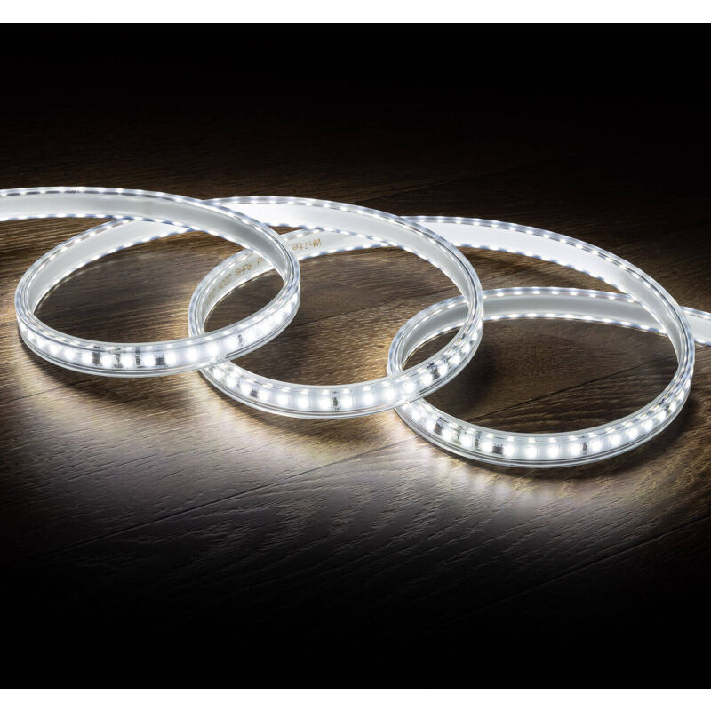 Striscia LED Regolabile 220V AC Solid 120 LED/m Bianco Freddo IP65 su Misura Larghezza 14mm Taglio ogni 10cm si collega direttamente alla rete 220V, senza bisogno di alcun alimentatore o raddrizzatore aggiuntivo . La sua flessibilità gli permette di adattarsi a quasi tutte le superfici. Striscia LED Regolabile 220V AC Solid 120 LED/m Bianco Freddo IP65 su Misura Larghezza 14mm Taglio ogni 10cm I 120 LED/m SMD 2835 integrati nella striscia LED consumano soltanto 10W al metro. Realizzata con materiali di prima qualità, ha la massima protezione contro gli agenti solidi esterni e una magnifica protezione contro i liquidi, che si riassume nell'indice di protezione IP65 della striscia che lo rende adatto per l'uso in ambienti sia interni che esterni . Con la Striscia LED Dimmerabile 220V AC Solid 120 LED/m Bianco Freddo IP65 su Misura Larghezza 14mm Taglio ogni 10cm sono inclusi un cavo conconnettore rapido, tappi terminali e pin, che facilita l'installazione ed evita la saldatura. Inoltre