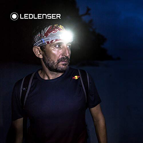 Ledlenser NEO6R Torcia frontale, torcia da corsa, blu, ricaricabile con batteria, 240 lumen, luce rossa posteriore, autonomia fino a 40 ore, running, sport, corsa, jogging, resistenza, torcia da testa