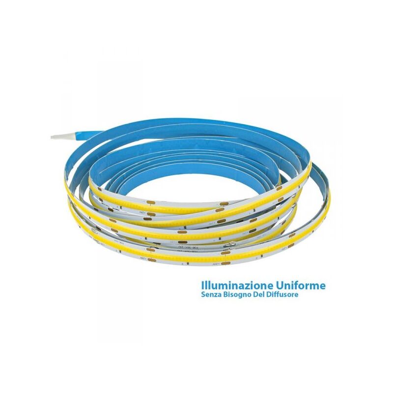 Striscia Led COB Dimmerabile PWM 5 Metri 14W/M 120LM/W 1700LM/M CRI>90 DC24V Con Led Smd COB,No Puntini Luce Continua Uniforme,Tagliabile Ogni 45mm,Larghezza 10mm Con Biadesivo 3M,Senza Silicone IP20,Bianco Caldo Circa 3000K Super Luminosa 7000 Lumen Totale, Consumo Reale Solo 50W Bobina Led COB molto delicata,non distorcere o piegare Marca LEDLUX Codice Prodotto BL2414C3 Dimmerabile SI (PWM) Voltaggio DC24V Potenza Nominale 70W (14W/Metro) Potenza Effettiva 50W (Assorbe circa 2,10A a 24V corrente continua (DC)) Luminosità Circa 7000 Lumen Totale CRI RA>90 Angolo Luce 120 Gradi Numero di Led COB, tagliabile ogni 4 cm Colore Bianco Caldo Circa 3000K Impermeabilità IP20 Tipo Attacco Con Biadesivo 3M Misura 5000mmX10mmX1.5mm(LXWXH) Durata > 30000 ore Obbligo Dissipatore SI Omologazione SI, CE e RoHS Nota Bene Alimentatore consigliato per 5 metri interi di striscia è 75W 24V(cod prodotto MW0757 ) Nella striscia led esiste la caduta di tensione, questa striscia a DC24V assorbe 2,1A per