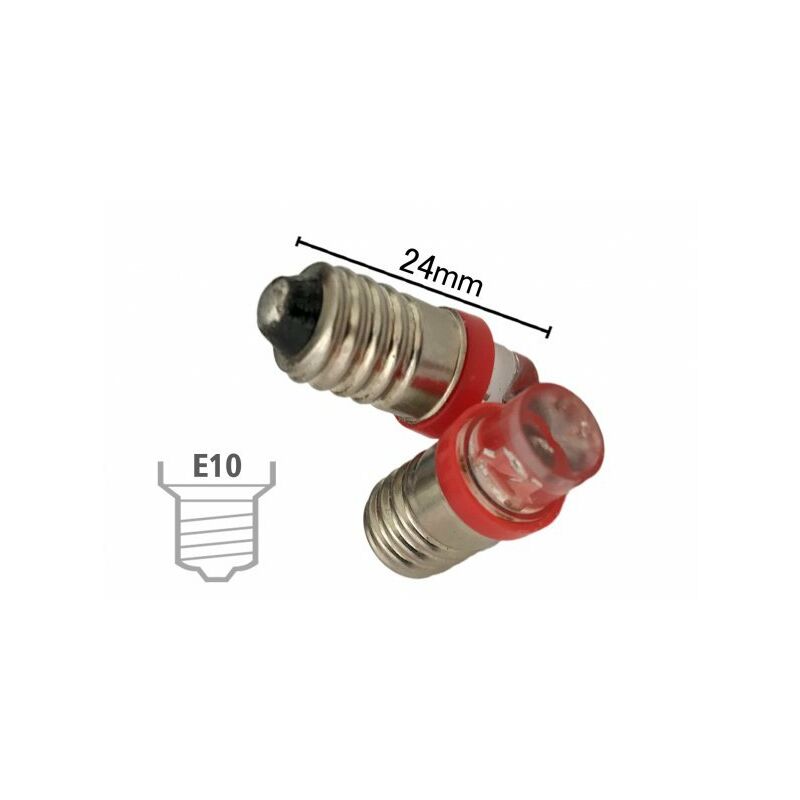 Coppia 2 Lampadine Led E10 Vite Miniatura Con 1 Led Colore Rosso 6V 12V 0,2W Attacco:E10 Voltaggio: 12V Potenza:0,2W Numero Led:1 Led Colore:ROSSO Misura:Lunghezza 24mm,Diametro 8mm Confezione: 2 Pezzi