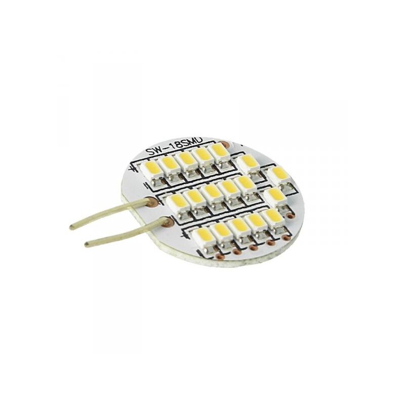 Lampada LED Bispina G4 2W DC12V Bianco Caldo 3000K 18 SMD 3528 150lm, diametro solo 24mm,Spessore 5mm Marca LEDLUX Codice Prodotto GG4118 Attacco G4 Voltaggio DC12V Potenza 2W Luminosità 150 Lumen Angolo 120 Gradi Valore CRI RA>80 Colorazione Bianco Caldo 3000K Dimmerabile SI (PWM) Vita 30000 Ore Dimensione Diametro 24mm,Spessore 5mm Confezione 1 PZ