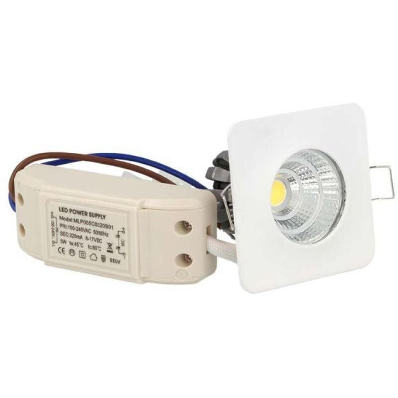 Lampada led cob 3W=25W con angolo illuminazione solo 24°,3000K,quadrato 60X60mm,foro da 45mm,IP40,carcassa bianca,bella e elegante,installazione da incasso nel soffitto controsoffitto del cartongesso di tutti generi Un Mini FARETTO DA INCASSO con 1 Led COB da 3W - Modello Quadrato 60X60mm- - Basso Consumo 3W Alta Luminosità 250 lumens- -Colorazione Bianco Caldo Circa 3000K- - Omologazione CE e RHOS - INFORMAZIONI UTILI: Marca: LedLux Voltaggio Alimentazione: AC100V - AC240V 50/60 Hz Output alimentatore: DC8V-17V 320mA (ricambio led driver acquistabile nel nostro negozio con codice prodotto: CC3003 ) Angolo di Illuminazione: 24° Valore CRI: RA>80 Fattore di Potenza:>0,6 Potenza di Consumo: solo 3W rispetto ai 25W ad incandescenza Numero di LED: 1 Led COB da 3W Colorazione: Luce Bianco Caldo circa 3000K Potenza di Illuminazione: circa 250 Lumens Peso: 95g(Alimentatore Incluso) Dimensione Faretto: 60mmx60mmx45mm Diametro Da incasso (Per Il Foro):Minimo 43mm Massimo 54mm Dimensione Led