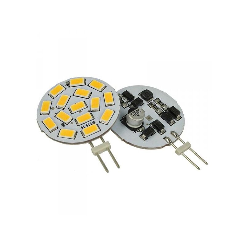 2 Pezzi di Lampade G4 con 15 LED SMD 5630 (DC/AC 10V- 30V) Funziona sia 12V che 24V Colorazione Bianco Freddo 6000K Basso Consumo 3,5W Alta Luminosità 350 Lumen 2 Pezzi di Lampade "G4" con 15 LED SMD "5630" (DC/AC 10V- 30V) -Funziona sia 12V che 24V- - Colorazione Bianco Freddo 6000K - Basso Consumo (3,5W) - Luminosità (350 Lumen) - INFORMAZIONI UTILI: Marca: LedLux Voltaggio Alimentazione: DC/AC 10V- 30V 50Hz(nel caso di AC solo a 50Hz) Angolo di Illuminazione: 160° Valore CRI: RA>80 Potenza di Consumo: solo 3,5W rispetto ai 35W ad incandescenza Numero di LED: 15 LED SMD "5630" Colore: Luce Bianco Freddo circa 6000K Potenza di Illuminazione: 350 Lumen Misura: Diametro 30mm, Altezza/Spessore 8mm, Attacco Lampada: G4 Durata di Vita: >30000 ore NOTA BENE: 1,Questa lampadina funziona a DC/AC 10V-30V 50Hz, perciò si può sostituire direttamente bispina G4 alogena 12V senza necessità di cambiare il trasformatore vecchio (nota bene: alimentatore vechcio deve essere AC 12V 50 Hz,non altro