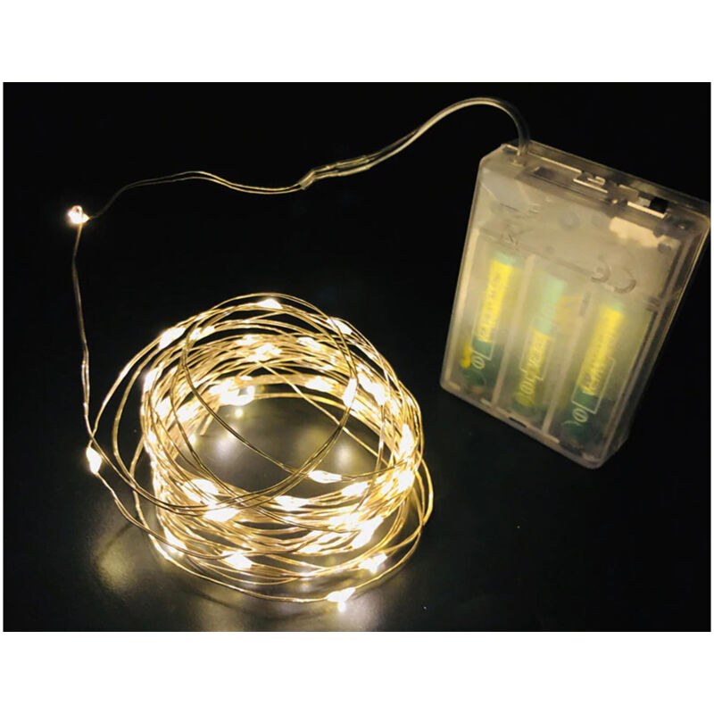 Stringa Led Con Filo Di Rame Copper Wire String 4.5V 1W Alimentazione Con 3 Pile AA 1,5V (ESCLUSE Nel Kit) Filo Di Rame Flessibile, Piegabile,Tagliabile,Potete Realizzare Tante Cose Belle Secondo La Vostra Fantasia. Super Sottile E Leggero,Potete Applicare Dove Volete.IP67 Uso Sia Interno e Esterno(Box Per Pile Non è Impermeabile) Colore Bianco Caldo Giallo Con 2 Effetti: Luce Intermittente o Luce Fissa 5.2 Metri 50 Luci Led Cielo Stellato Per Decorazione Festa Nozze Addobbi Natalizi Marca LEDLUX SKU NN7050C Input 4.5V Consumo 1W Colore Bianco Caldo Giallo Numero di Led 50 Lunghezza Catena Luce 5,2 Metri Filo Rame Impermeabile Stringa Led IP67 Impermeabile Box Pile IP20 Alimentazione 3 Pile AA da 1.5V (Escluse Nel Kit) Controller 2 Giochi Di Luce: Intermittente o Luce Fissa Omologazione CE e RoHS