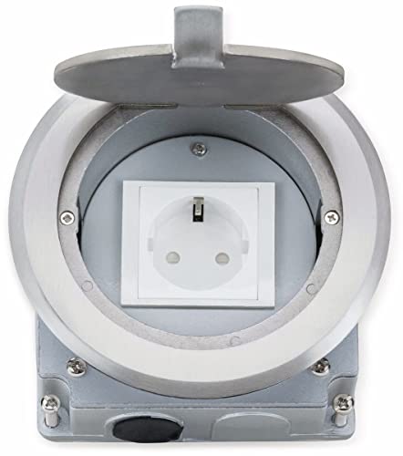 LEDmaxx Incasso, 1 Presa Schuko in Acciaio Inox, per Pavimento e Parete 2000 W, Bianco, 14.6 x 12 x 6.5 cm