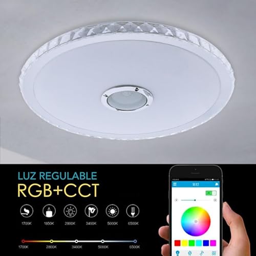 M Ledme - Plafoniera LED dimmerabile 72W, 510mm, RGB + CCT Luce musicale che cambia colore, con altoparlante, Bluetooth, telecomando e applicazione, adatta per bagno, camera da letto, LM6620