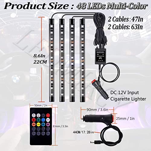 LEDMIRCY - Striscia di luci LED per auto, 48 LED, per interni, per auto, atmosfera auto, 12 V, multicolore RGB, con telecomando attivo (48 LED)