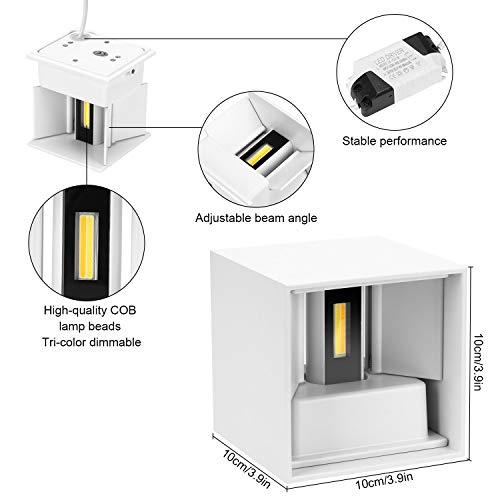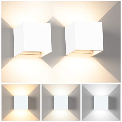 LEDMO 7W Applique da Parete Interno/Esterno Moderno 2 Pezzi Applique Dimmerabile Tricolore,Applique da Esterno IP65, Lampade da Parete per Soggiorno, Scala, Corridoio, Balcone(Bianca)