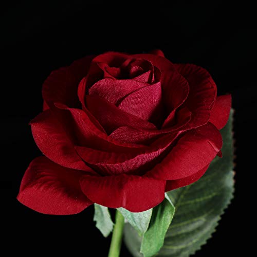 Rosa di seta artificiale.Lo stelo è facile da tagliare e piegare, ma i petali sembrano quasi reali,sono morbidi e di colore uniforme.
