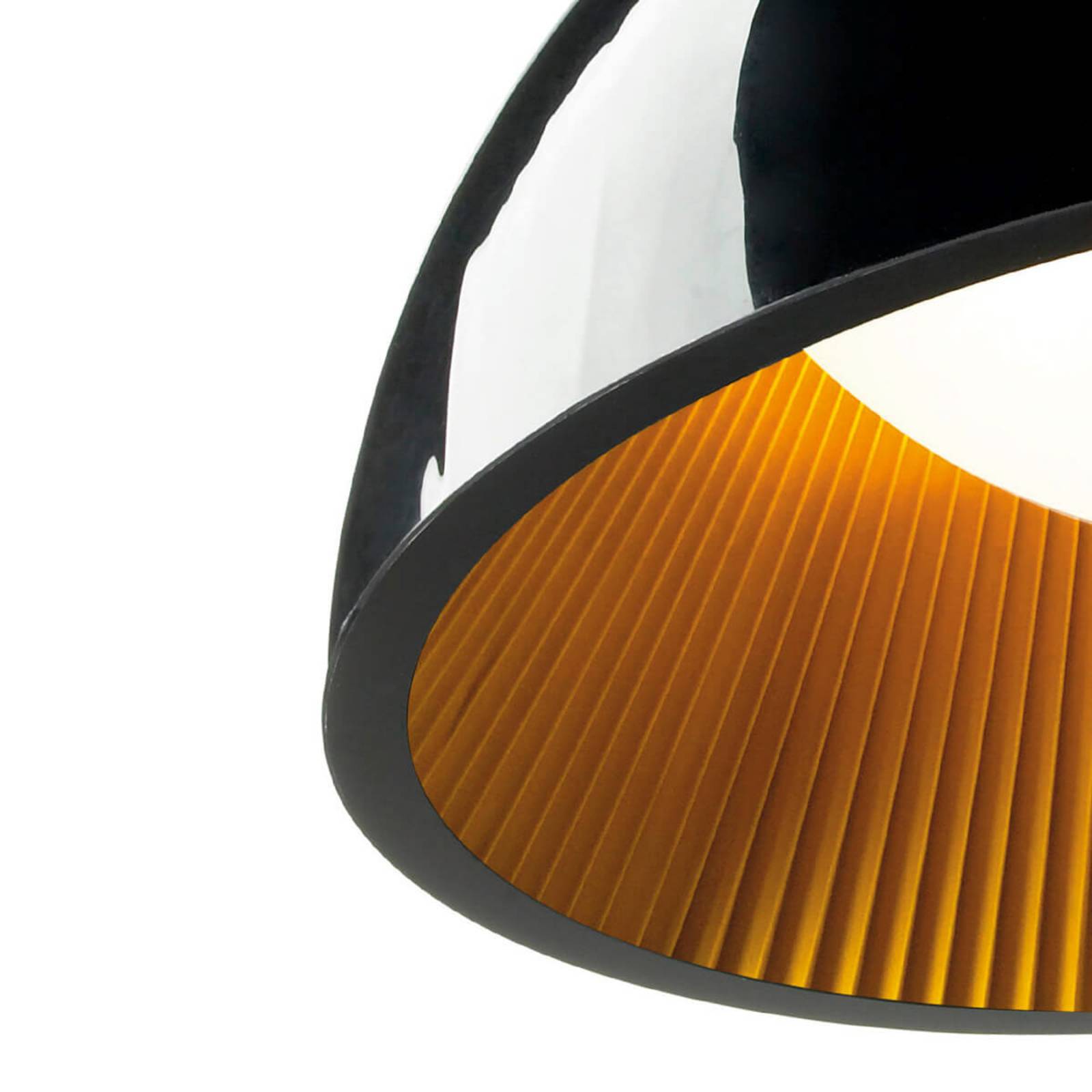 Lampada a sospensione estetica Ombrello con ottica plissettata all'interno del paralume Liscia e lucida all'esterno e con un'impressionante lavorazione a ventaglio all'interno, la lampada a sospensione Umbrella ispira da diverse angolazioni e fornisce inoltre un'illuminazione generale moderna e a risparmio energetico. L'interno ripiegato del paralume emisferico ricorda un ombrello, per cui questo gioiello porta questo nome. Umbrella convince per la sua sofisticata illuminazione indiretta grazie al diffusore in vetro e per la sua insolita composizione materica. L'ombrello fa bella figura sopra le scrivanie delle reception, nelle sale d'attesa o nelle sale riunioni, ma sta conquistando anche le aree living e le sale da pranzo private. - progettato da WIS Design