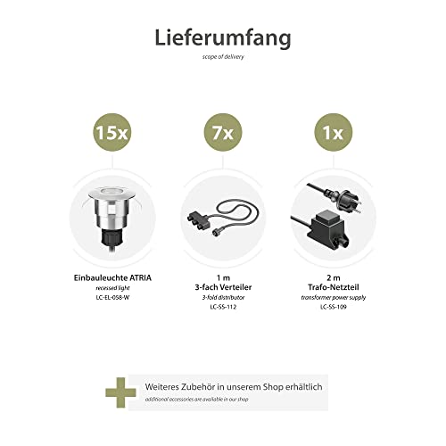 Ledscom.de Apparecchio da incasso a pavimento a LED ATRIA per esterni in alluminio bianco freddo, 14lm ciascuno, IP65, 40mm Ø Set di 15