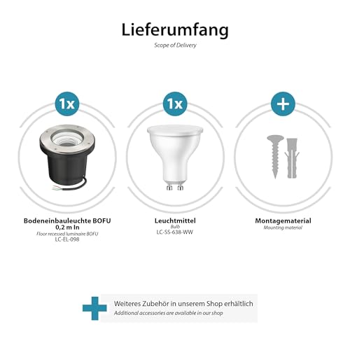 Ledscom.de Apparecchio da incasso a terra BOFU per esterni girevole in acciaio inox rotondo IP67 150mm Ø + lampada LED bianco caldo dimmerabile in 3 fasi: max 500lm