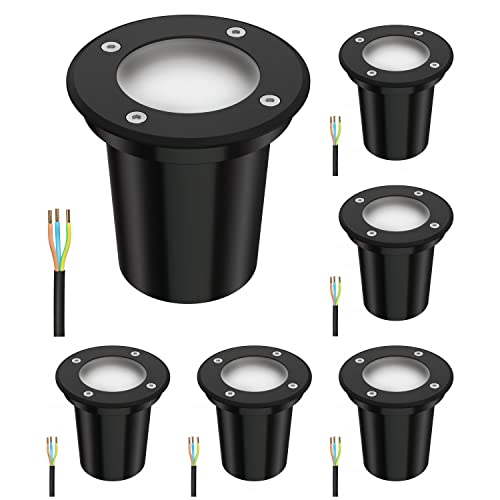 Ledscom.de Apparecchio da incasso a terra BOLI, per esterni, IP67, nero, satinato, rotondo, 108mm Ø incl. lampada LED 450lm bianco caldo ciascuno, 6 pezzi.
