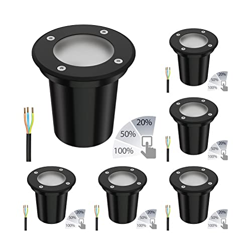 Ledscom.de Apparecchio da incasso a terra BOLI, per esterni, IP67, nero, smerigliato, rotondo, 108mm Ø incl. lampada LED ciascuno 609lm bianco, 6 pezzi.