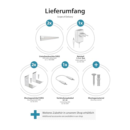 [Il materiale di montaggio in dotazione consente di installare la lampada sottopensile in modo semplice e rapido. A seconda dell'uso previsto, è possibile installare la striscia luminosa a LED rivolta verso il basso o in avanti.