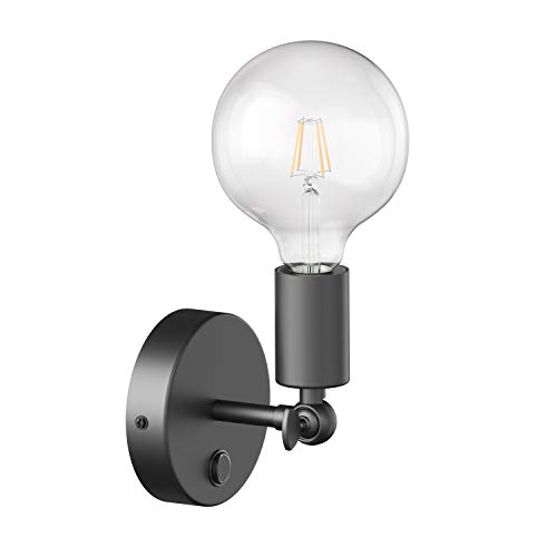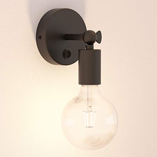 Ledscom.de Applique vintage E27 FETRO con interruttore, nero, girevole, incl. lampada E27 (bianco caldo, 2700K, 6W =60W, 800lm)
