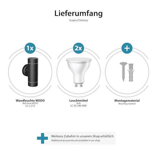 Ledscom.de 4 pz. applique WEDO per esterni, nero, acciaio inox, IP44, a due luci, Up