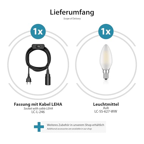 [Materiali di alta qualità] - La pratica lampada a cavo LEHA è realizzata in plastica e con un cavo tessile di 3 metri, che le conferisce un aspetto semplice ed elegante e una grande flessibilità in un'ampia gamma di applicazioni.