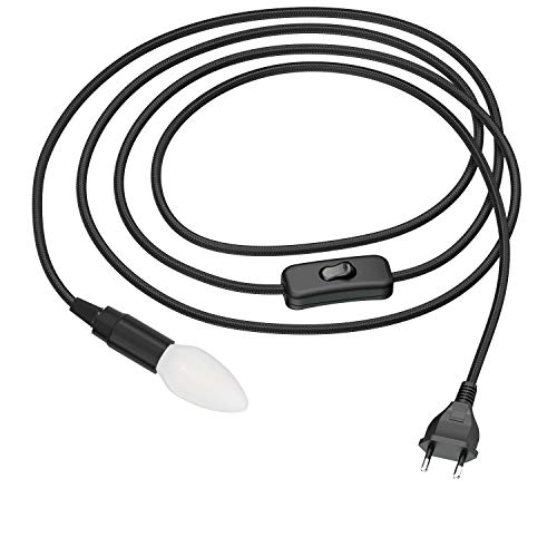 Ledscom.de Cavo tessile LEHA con spina e interruttore nero 3m incl. lampada LED E14 opaca 4,066W 424lm, bianco caldo