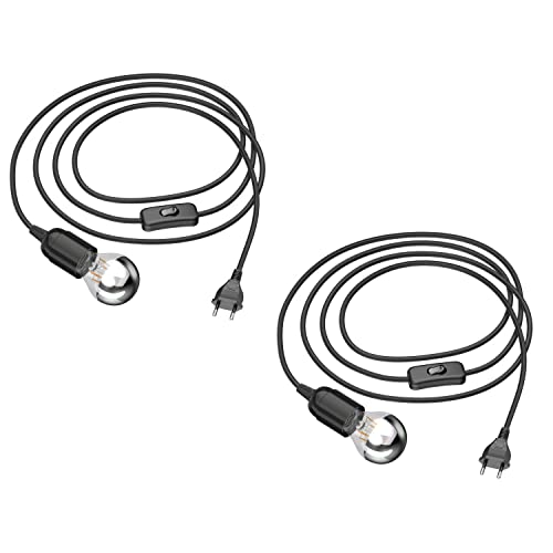 Ledscom.de Cavo tessile LEHA con spina e interruttore, nero, 3m incl. lampadina 5,82W cad. 667lm bianco caldo, 2pz.