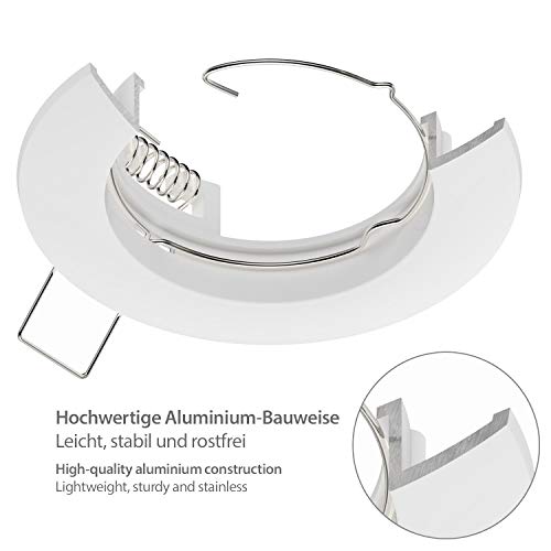 Ledscom.de Cornice da incasso a soffitto CIRC Anello da incasso in alluminio bianco (LED/Halogen/GU10/MR16/PAR16/50mm) incl. presa GU10, 6 pezzi.