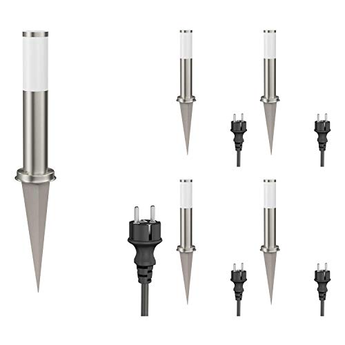 Ledscom.de Dissuasore luminoso PORU cromo con picchetto a terra e cavo da 2 m, per esterni, in acciaio inox, rotondo, 38,5 cm, incl. lampada LED Smart Home RGBW E27, 8,89 W, 892 lm ciascuno, 5 pezzi.