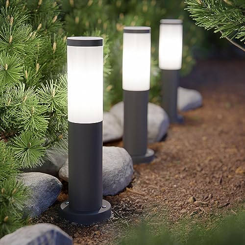 Ledscom.de Dissuasore luminoso PORU con picchetto di terra, per esterni, IP44, 39cm, antracite, incl. lampada E27 max. 963lm ciascuna, bianco caldo, 5pz.