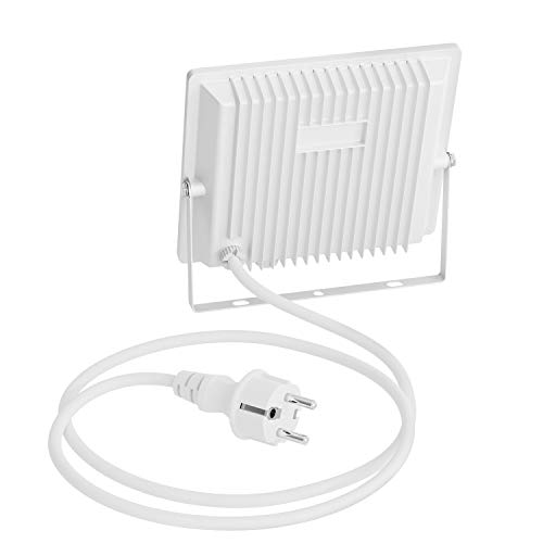 Il faretto LED per esterni è collegato tramite un cavo di alimentazione e una spina di rete.