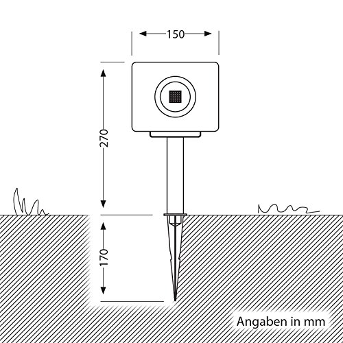 Ledscom.de Faretto da giardino a LED WEGA con picchetto di terra e base da 15 cm per uso esterno, nero, 28,005W, 2361lm, bianco caldo