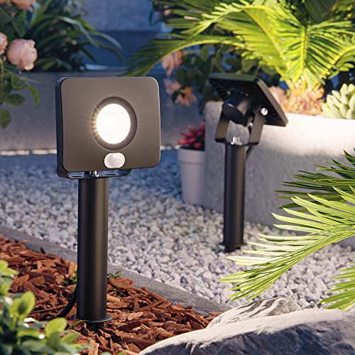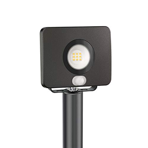 Ledscom.de Faretto da giardino a LED WEGA con picchetto di terra e base da 15 cm per uso esterno con rilevatore di movimento, nero, 11,32W, 880lm, bianco