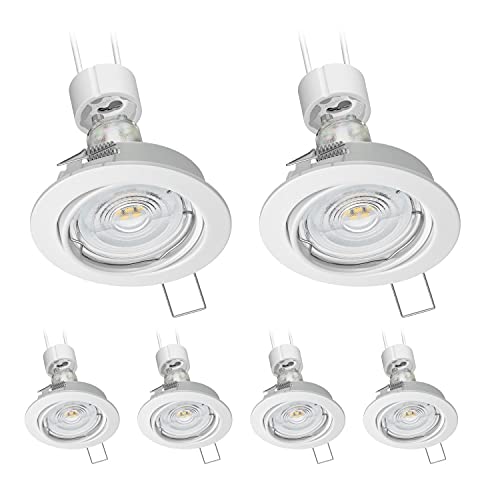 Ledscom.de Faretto da incasso FERE, orientabile, bianco, rotondo, Ø 8,3 cm, incl. lampada LED GU10 (bianco caldo, 5,4W, 510lm ciascuno, 50°), 6 pezzi.