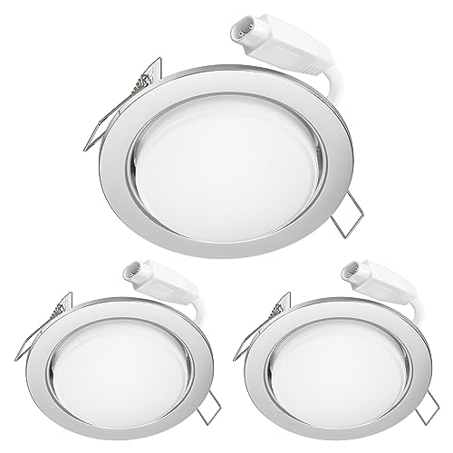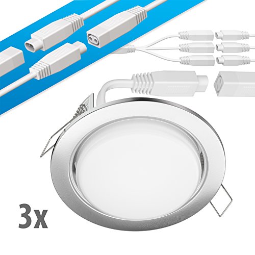 Ledscom.de Faretto da incasso a soffitto a LED RUBA cromo opaco GX18, 315W ciascuno 560lm bianco rotondo piatto 107mm Ø cerchio bullone circa 83-100mm Ø Set di 3