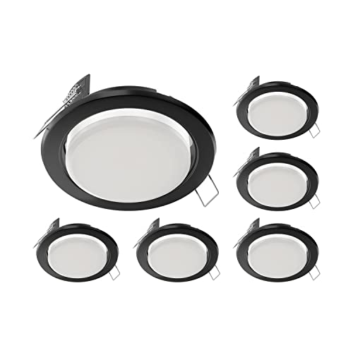 Ledscom.de Faretto da incasso a LED ZOBE piatto GX53 nero rotondo 10,063W ciascuno 1038lm bianco caldo 107mm Ø cerchio bullone 90mm Ø, 6 pz.