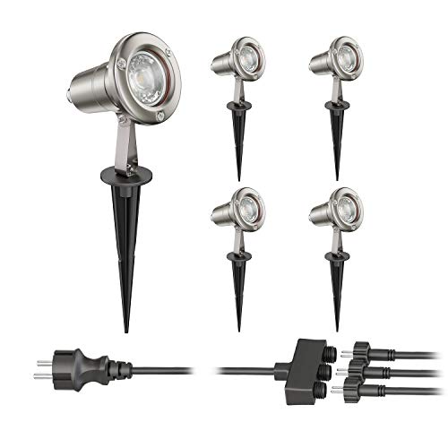 Ledscom.de Faro da giardino MUK con picchetto di terra per uso esterno, acciaio inox, 30,44W ciascuno 524lm 30° bianco Set di 5