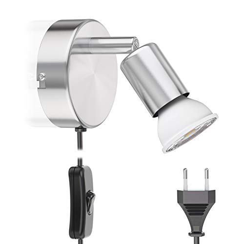 Ledscom.de Lampada da lettura LUNARA con interruttore e spina cromo opaco GU10 Lampada da parete 5,473W 468lm 30° bianco caldo
