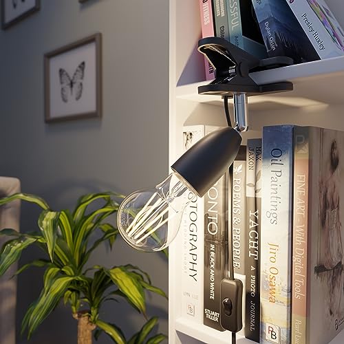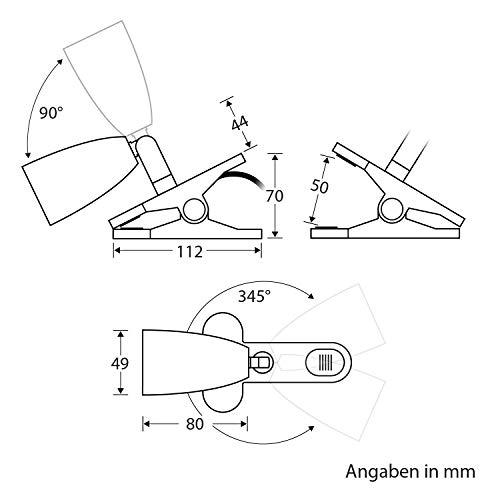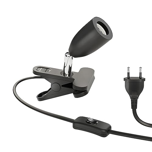 Ledscom.de Lampada a morsetto LIK, interruttore, nero opaco, 1x E27 max. 60W