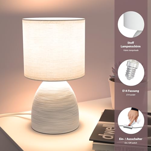 Ledscom.de Lampada da tavolo CALA, interruttore, ceramica, tessuto, bianco, 1x E14 max. 40W, lampada da tavolo, lampada da comodino, lampada da letto, luce notturna, lampada in ceramica, lampada in