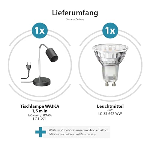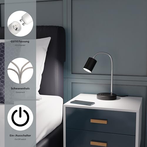 Ledscom.de Lampada da tavolo WAIKA con collo d'oca e interruttore nero opaco, incl. lampada LED GU10 (bianco caldo, 2,339W, 227lm, 110°)