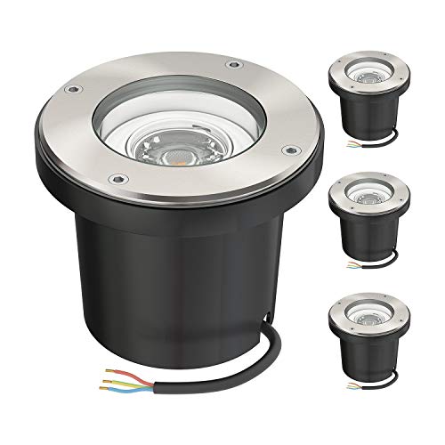 Ledscom.de Luce esterna a terra BOFU per esterni orientabile in acciaio inox rotonda IP67 150mm Ø incl. lampada LED 5,473W cad. 468lm 30° bianco caldo, 4 pz.
