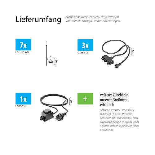 Ledscom.de Luce da giardino a LED HASTAM nero con picchetto di terra per esterno, IP65, 165lm ciascuno, bianco caldo, set di 7