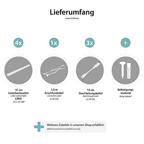 Ledscom.de Luce LED sotto il mobile LIWO 91cm, girevole, 1444lm ciascuno, bianco caldo Set di 4